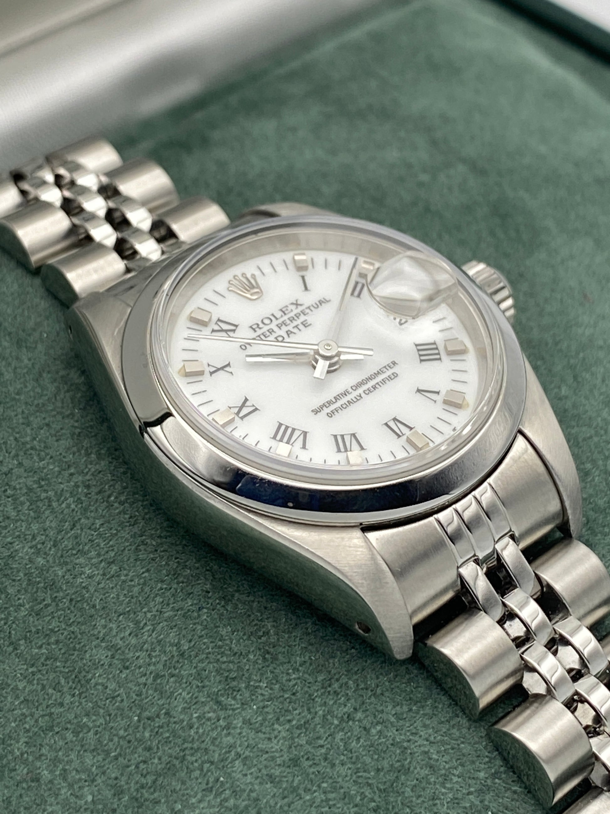 - Genuine Rolex white Roman numeral dial, period-correct replacement recently fitted to improve aesthetic condition