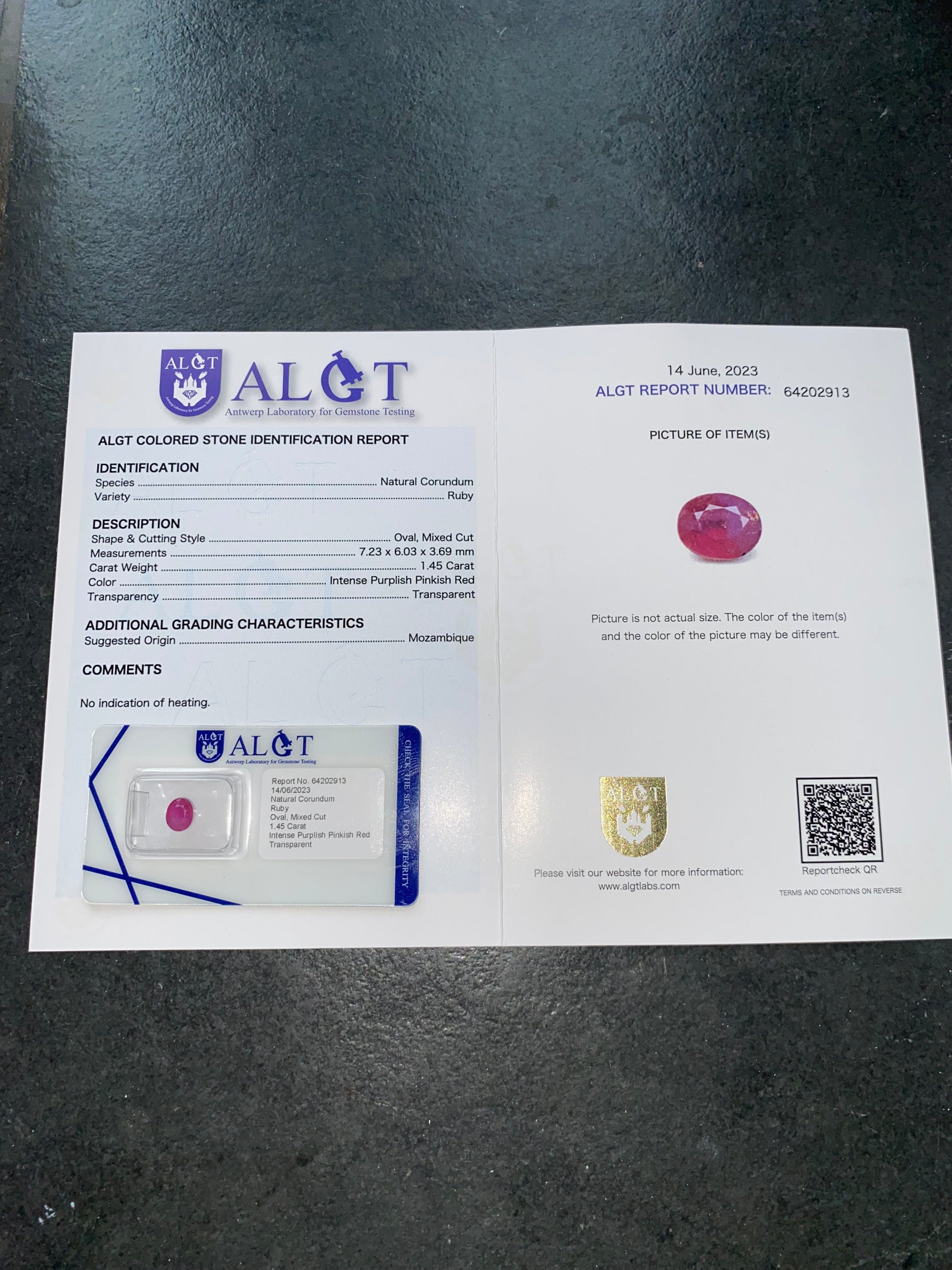- Gemstone: Natural ruby (certified, Mozambique origin)